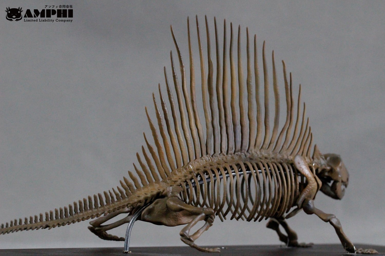 ディメトロドン (Dimetrodon) の縮小した、復元全身骨格模型です。