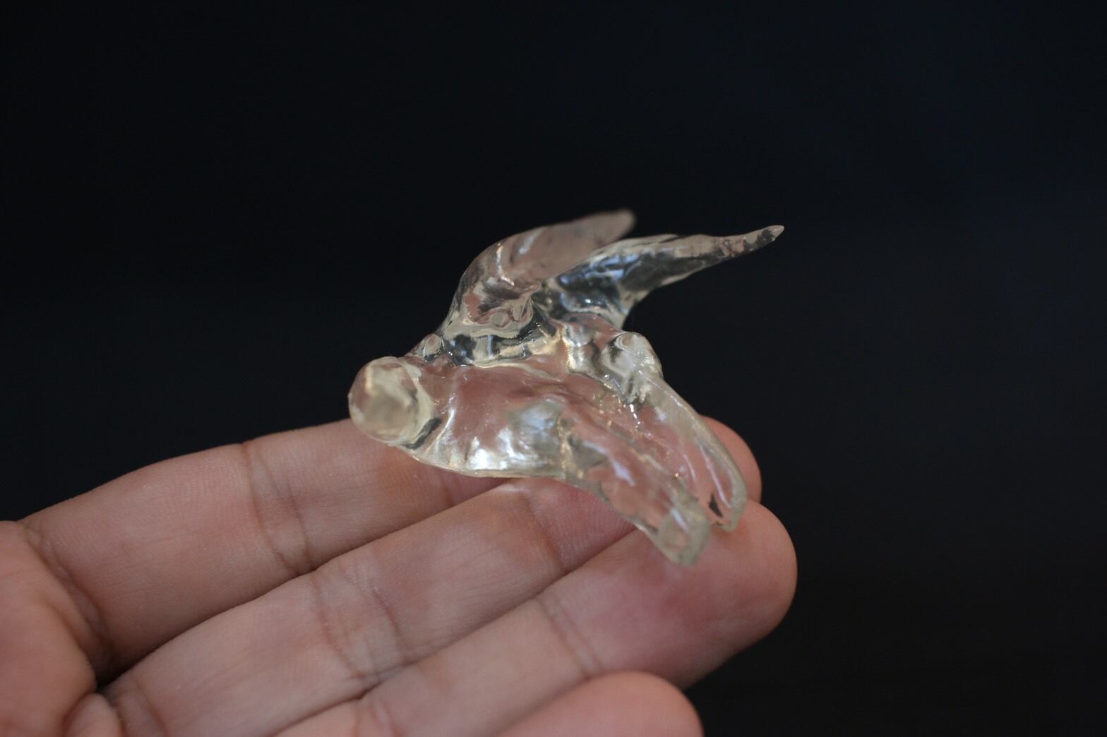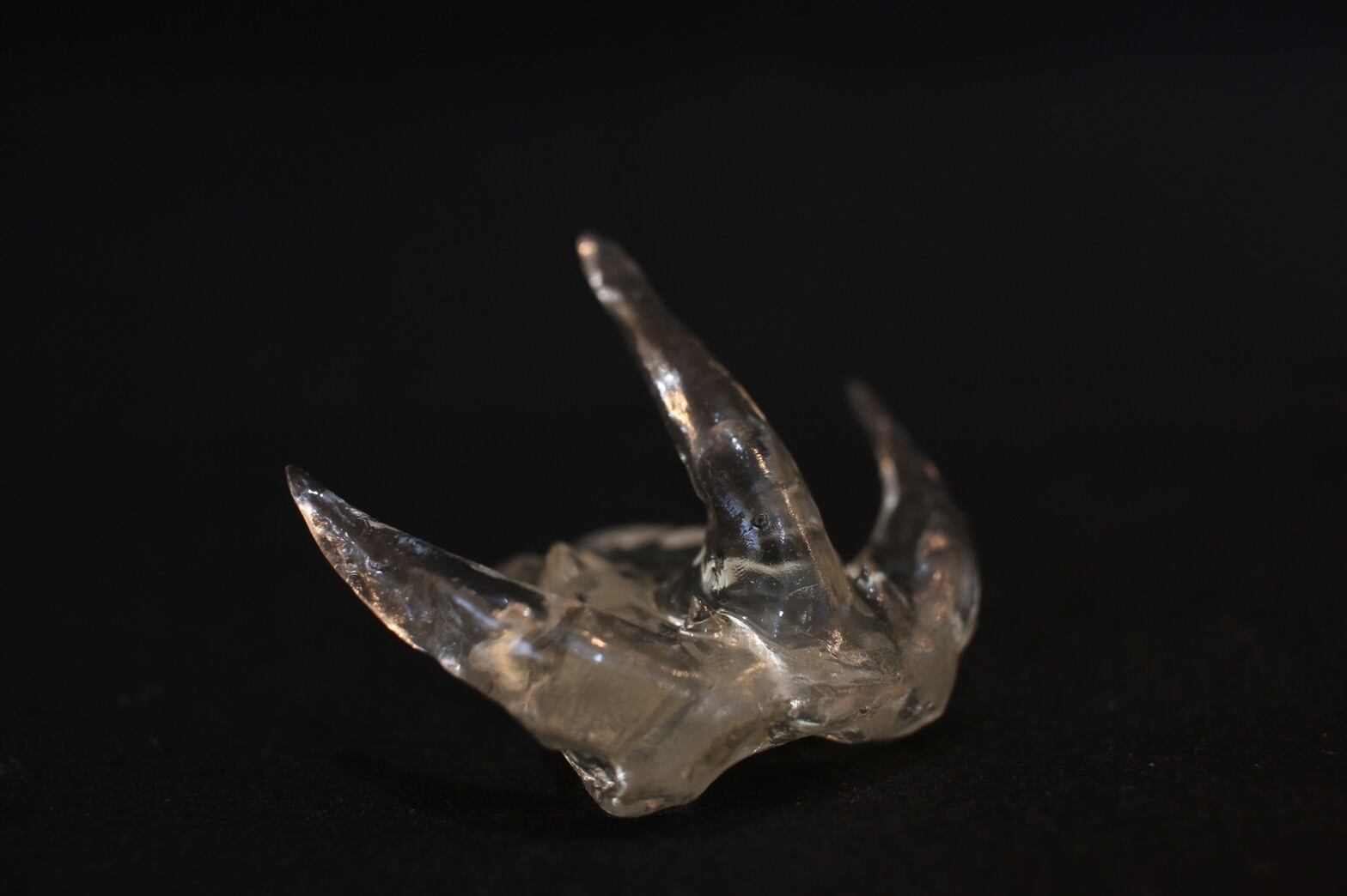本物のラブカの歯から3Dスキャンし、3Dプリンターによって作製しました。