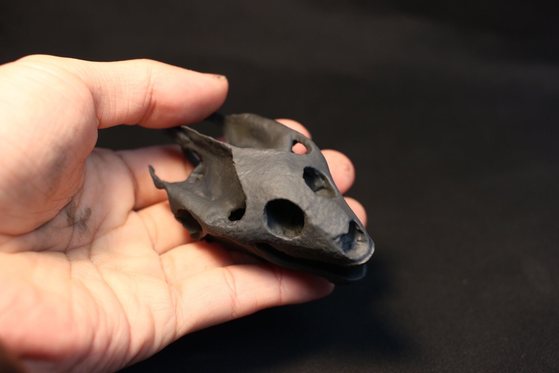 アンフィ合同会社の営業担当がまだ学生時代だった頃に、川で捕まえた個体の頭骨標本から3Dデータを取得しています。