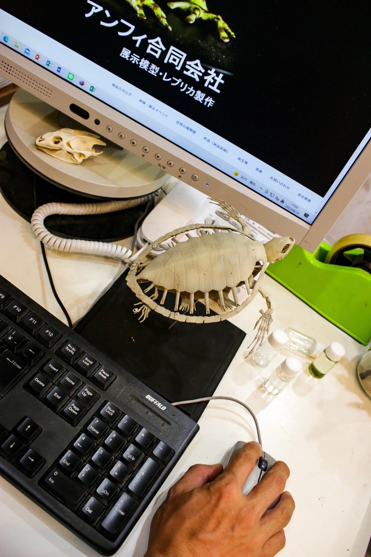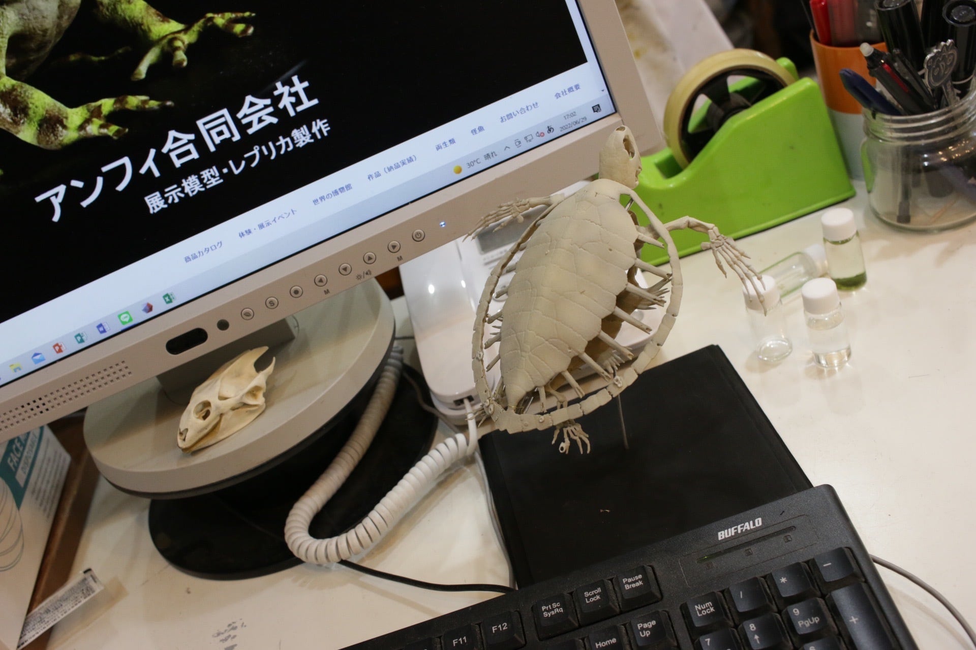 アオウミガメの縮小全身骨格レプリカです。