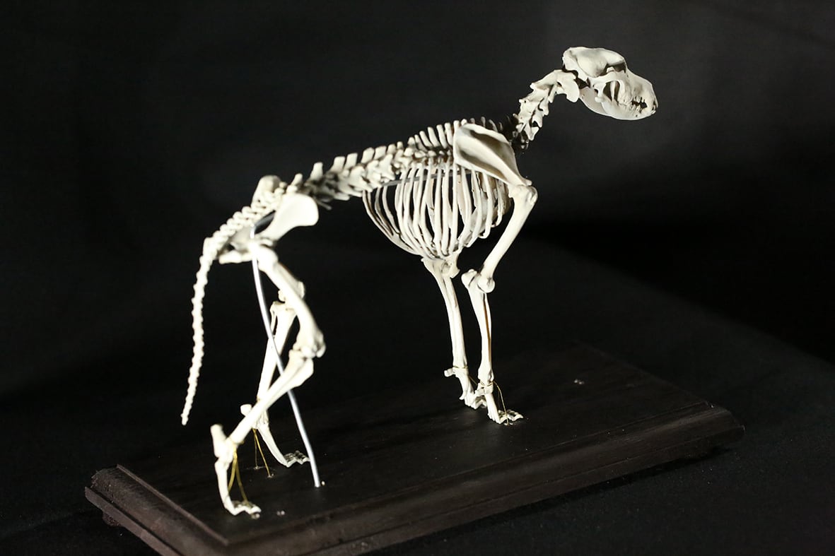 イヌの全身骨格レプリカです。模型の長辺は200mm