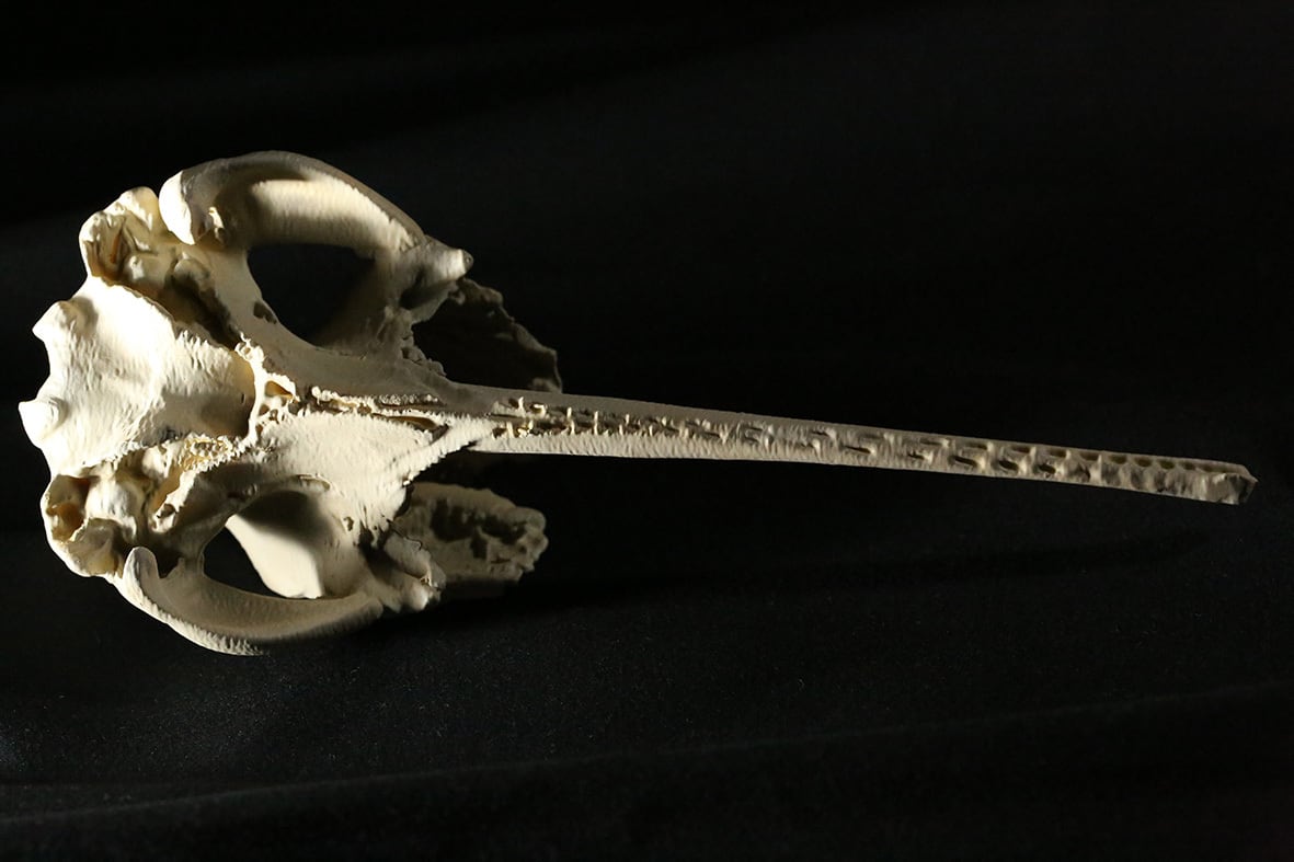 ガンジスカワイルカの頭蓋骨の二分の一スケールレプリカです。この元となった標本は、コペンハーゲン大学動物学博物館に保管されています。データは下記URLです。